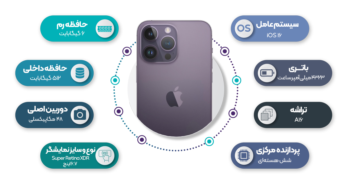 گوشی موبایل اپل مدل iphone 14 Pro Max 5G ظرفیت 512 گیگابایت و 6 گیگ رم کارکرده