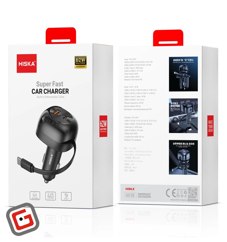 شارژر فندکی 62 وات هیسکا مدل HCC-336