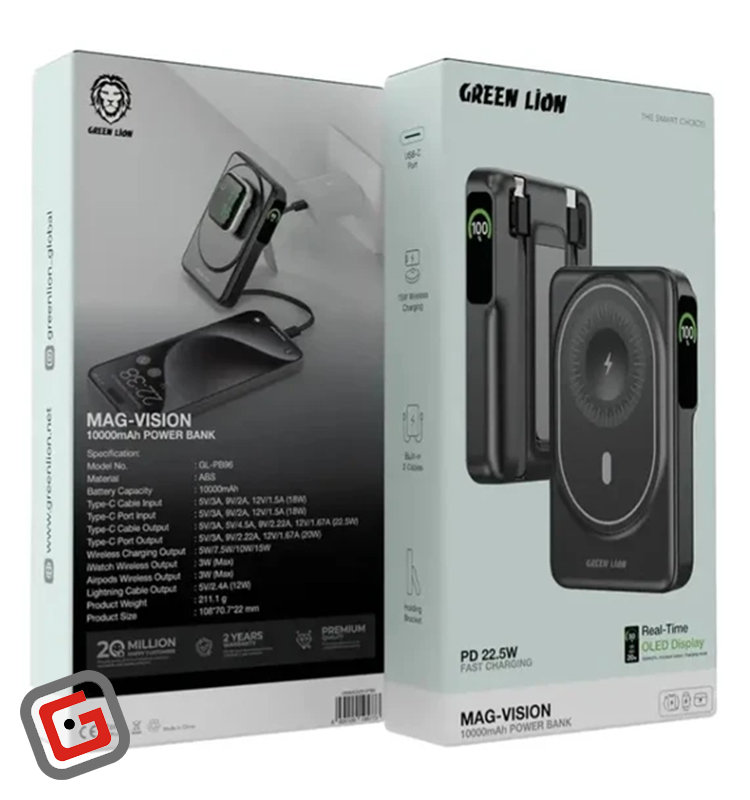 پاوربانک فست شارژ 22.5 وات گرین لاین مدل Mag-Vision ظرفیت 10000 میلی آمپر