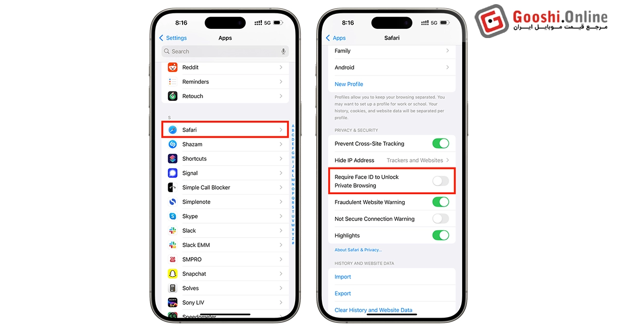 - گزینه Require Face ID to Unlock Private Browsing را فعال کنید.