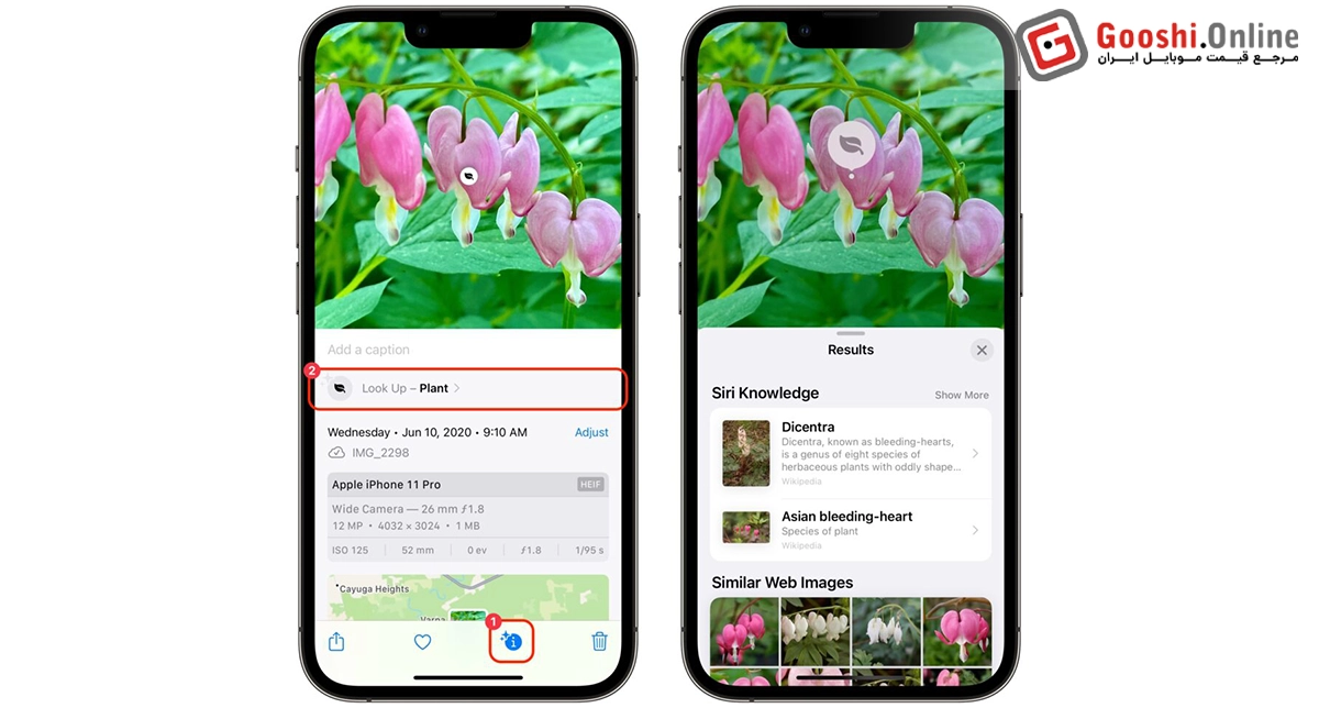 آیفون شما میتواند به راحتی گیاهان، گلها، درختان و حتی حیوانات را شناسایی کند! کافی است از سوژه مورد نظر عکس بگیرید و سپس روی دکمهی Info (i) در پایین تصویر بزنید.