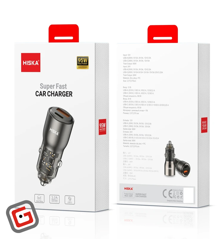 Hiska Car Charger Model HCC-329 95w