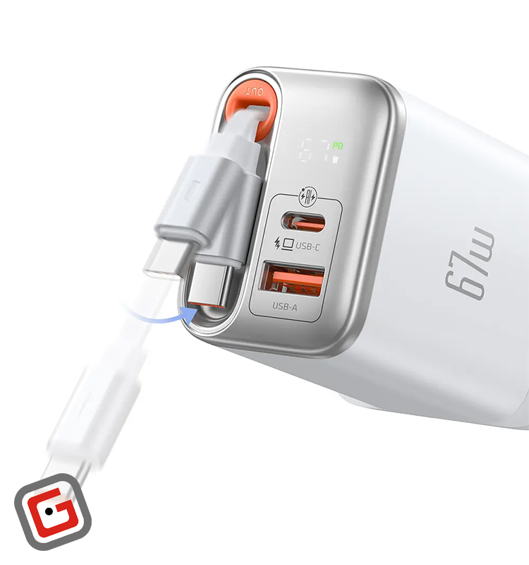 مجموعا 3 پورت : یک کابل خروجی تایپ سی+ 1 پورت Type-C و یک پورت USB-A
