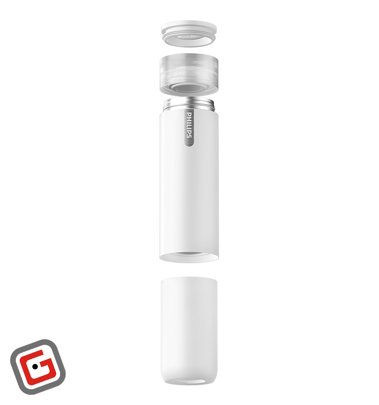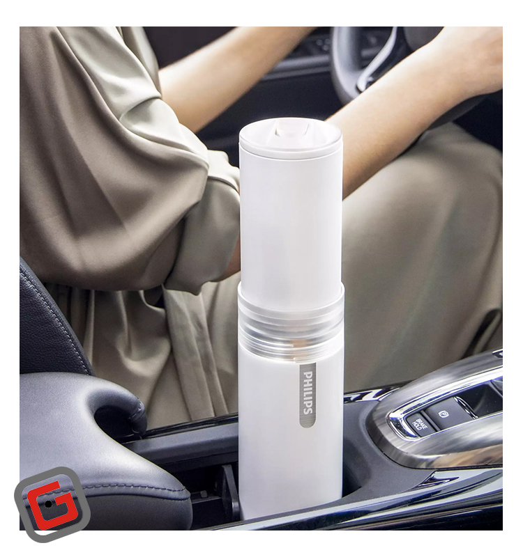 با چرخاندن فنجان روی درپوش بطری، میتوان هر دو را با یک دست حمل کرد